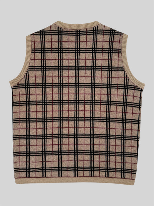 Vintage Burberry 90s Nova Check Knitted Vest Jumper Beige Medium Made In Italy