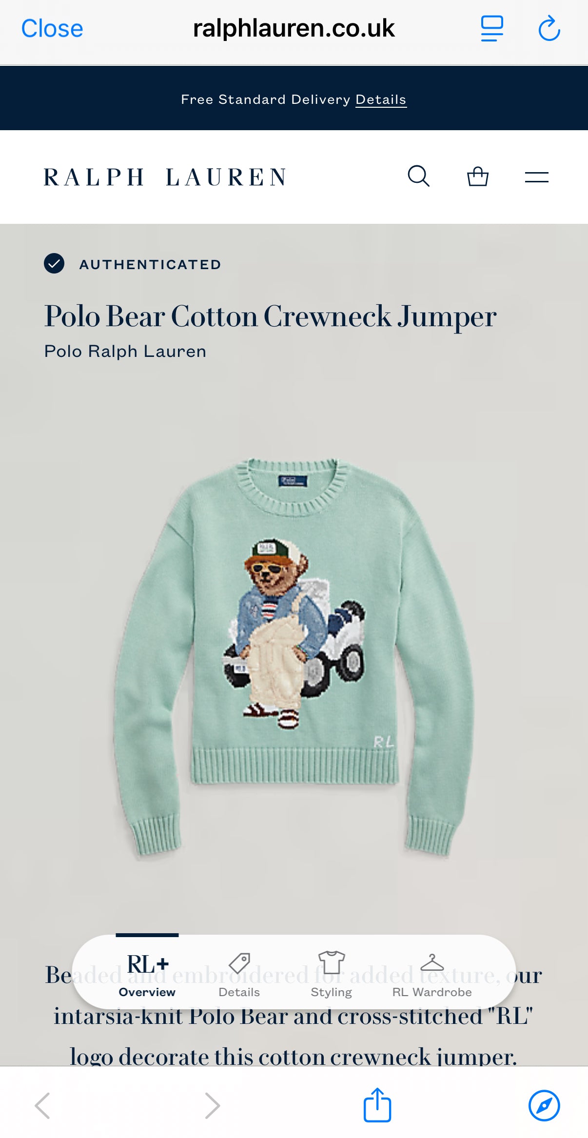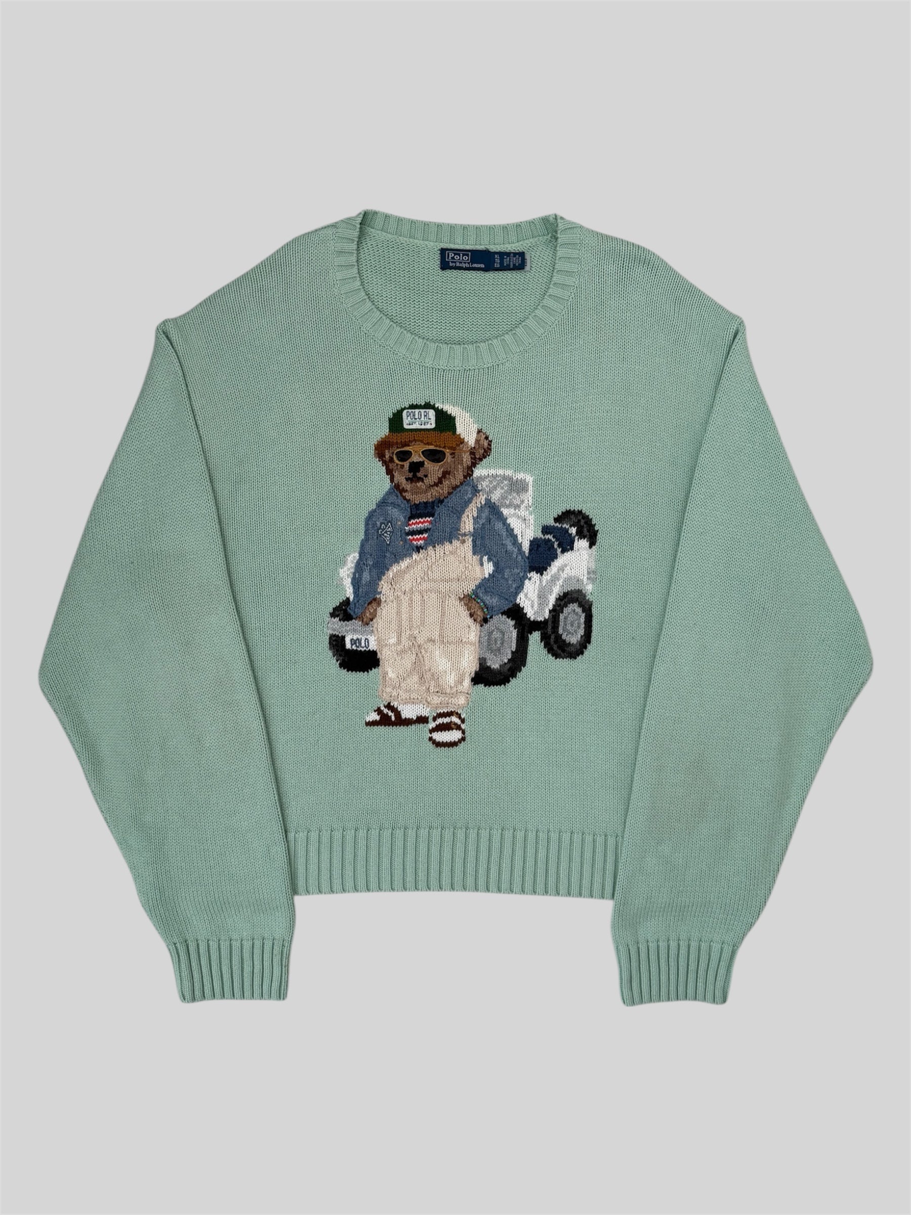 Authentic Polo Ralph Lauren Bear Knitted Jumper Celadon Green XL £449RRP QR SCAN