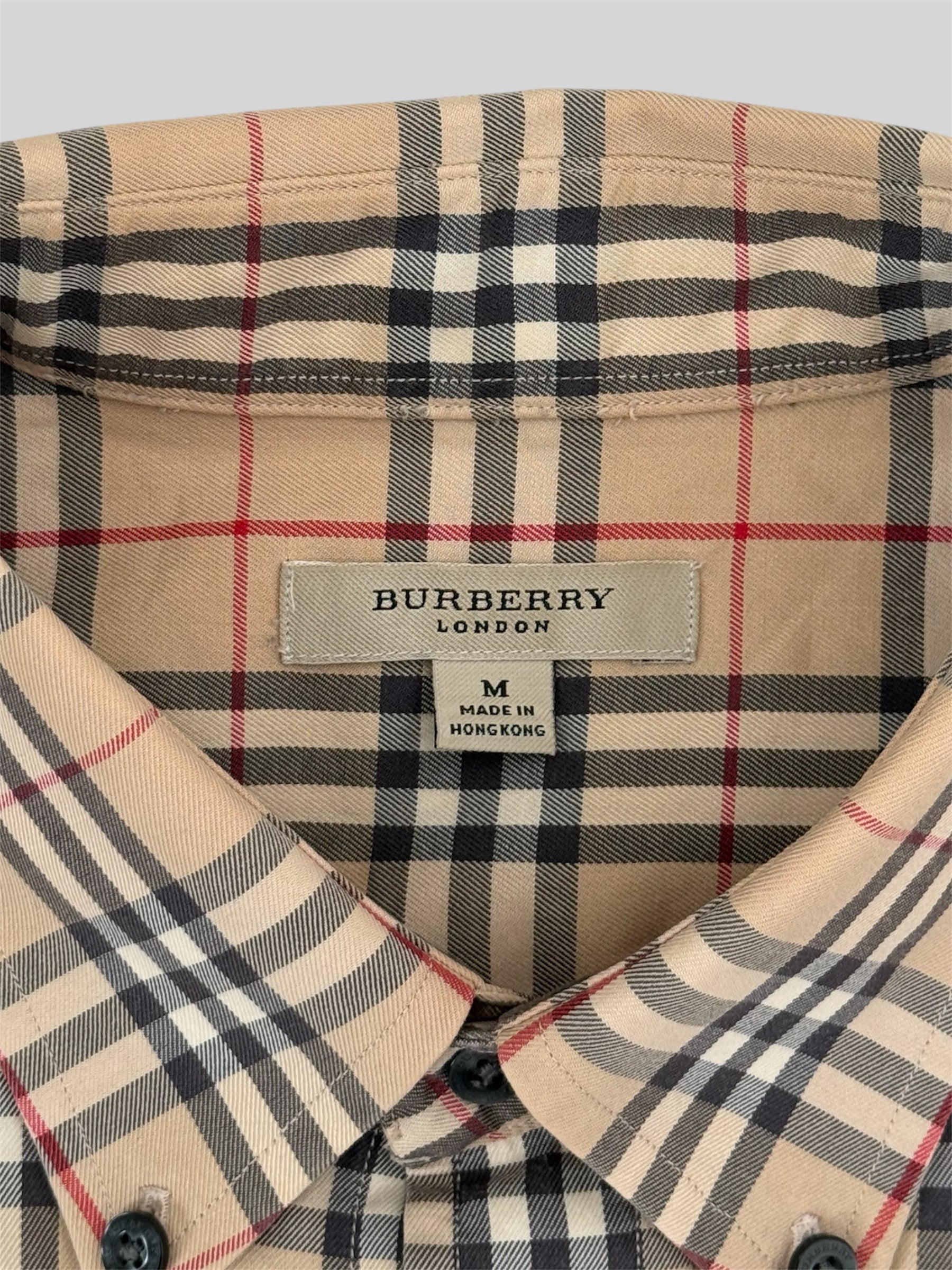 Vintage Burberry 2000s Nova Check Long Sleeve Button Up Shirt Beige Medium