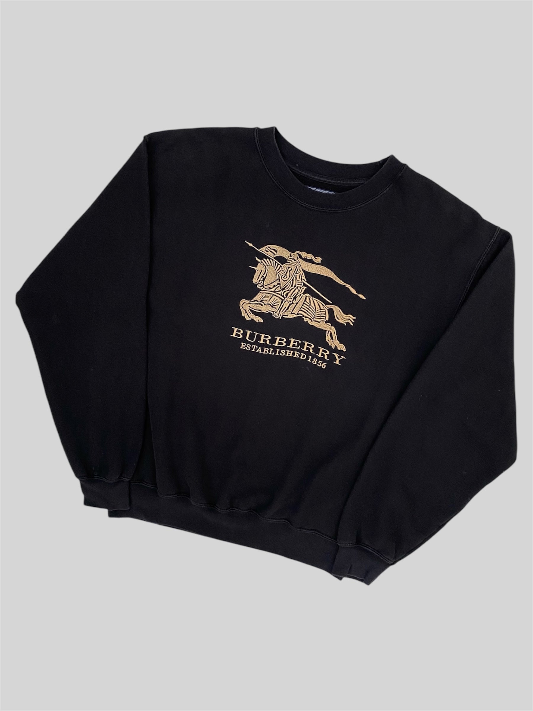 Vintage Burberry Embroidered Spellout Pullover Sweatshirt Black Medium
