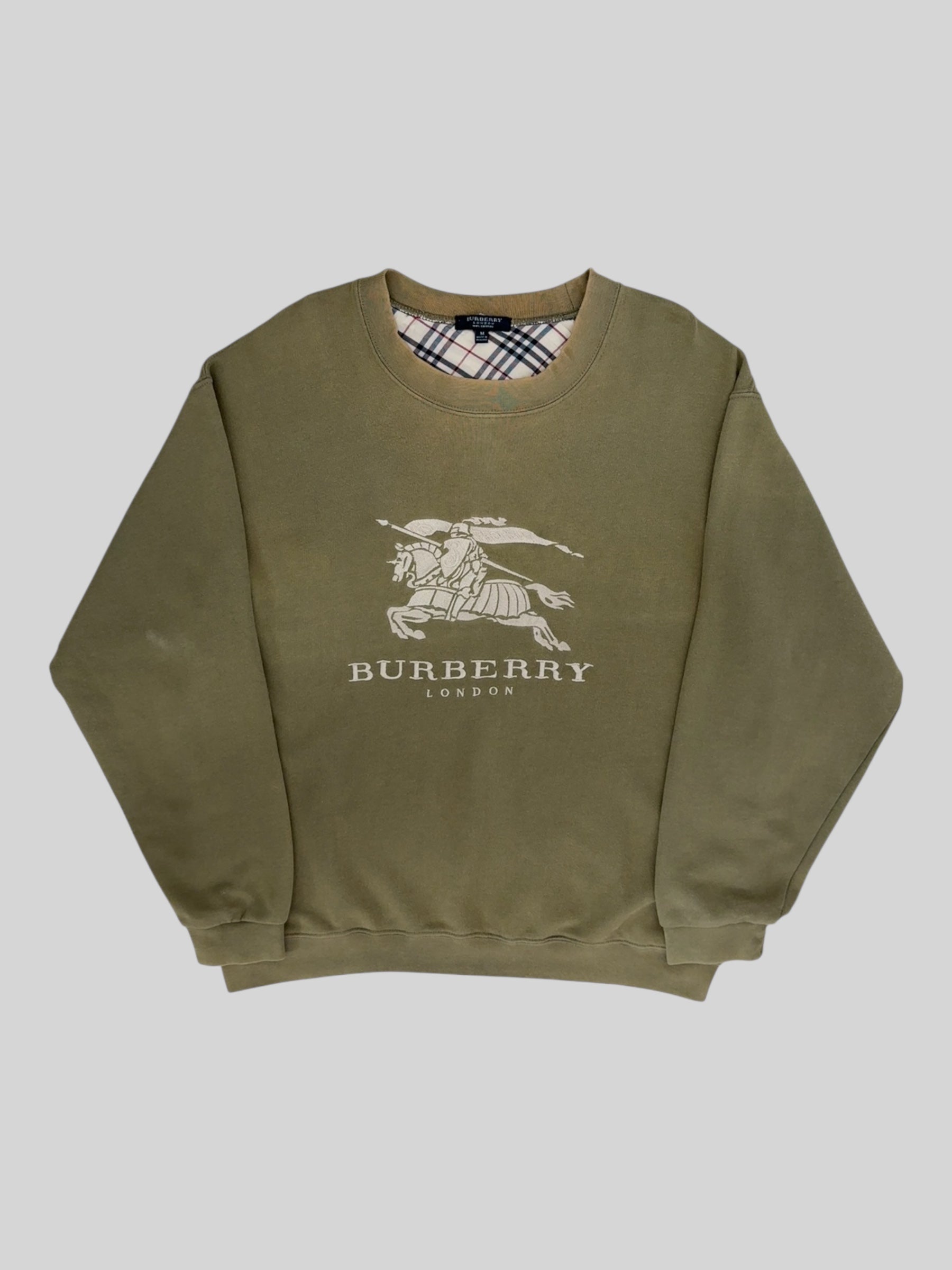 Vintage Burberry Embroidered Spellout Pullover Sweatshirt Light Green Medium