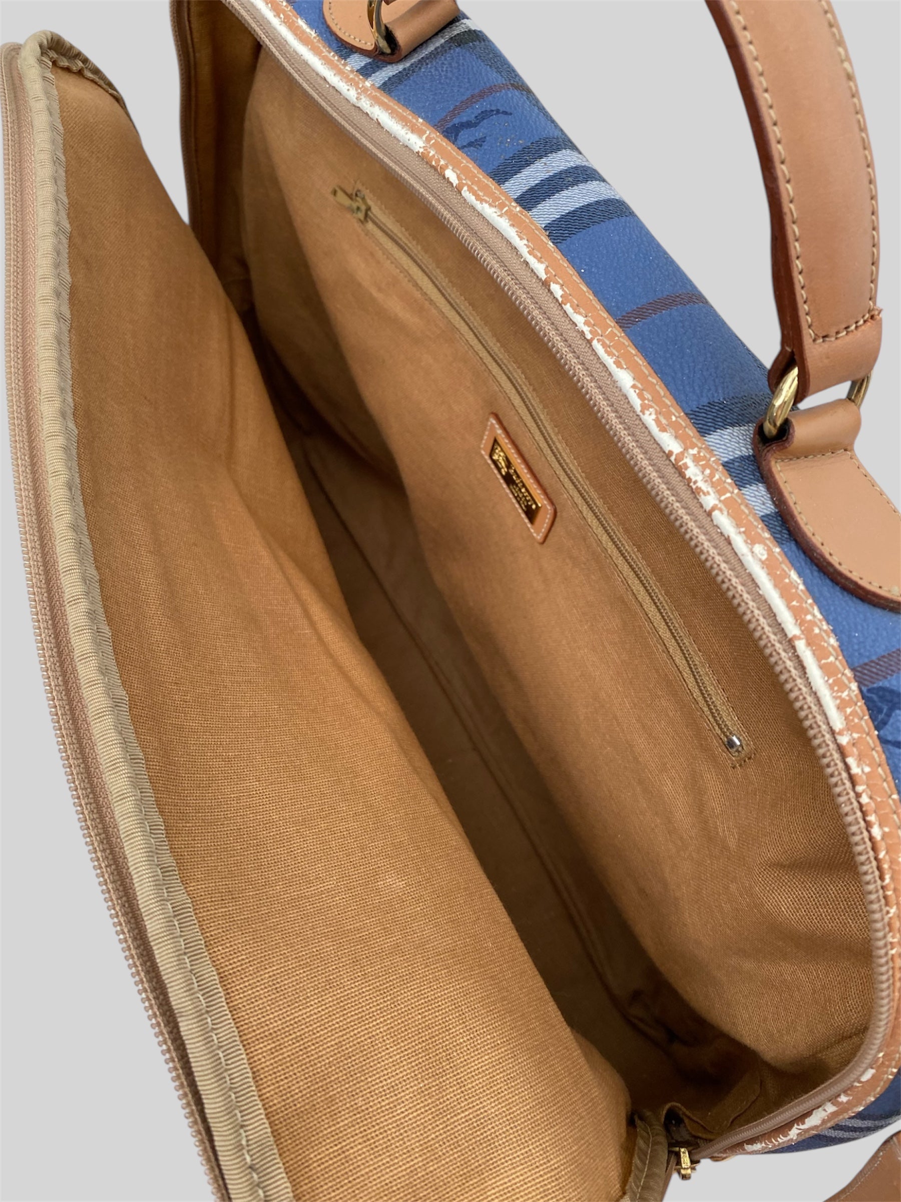 Vintage Burberry Nova Check Messenger Laptop Bag With Attachable Strap Blue
