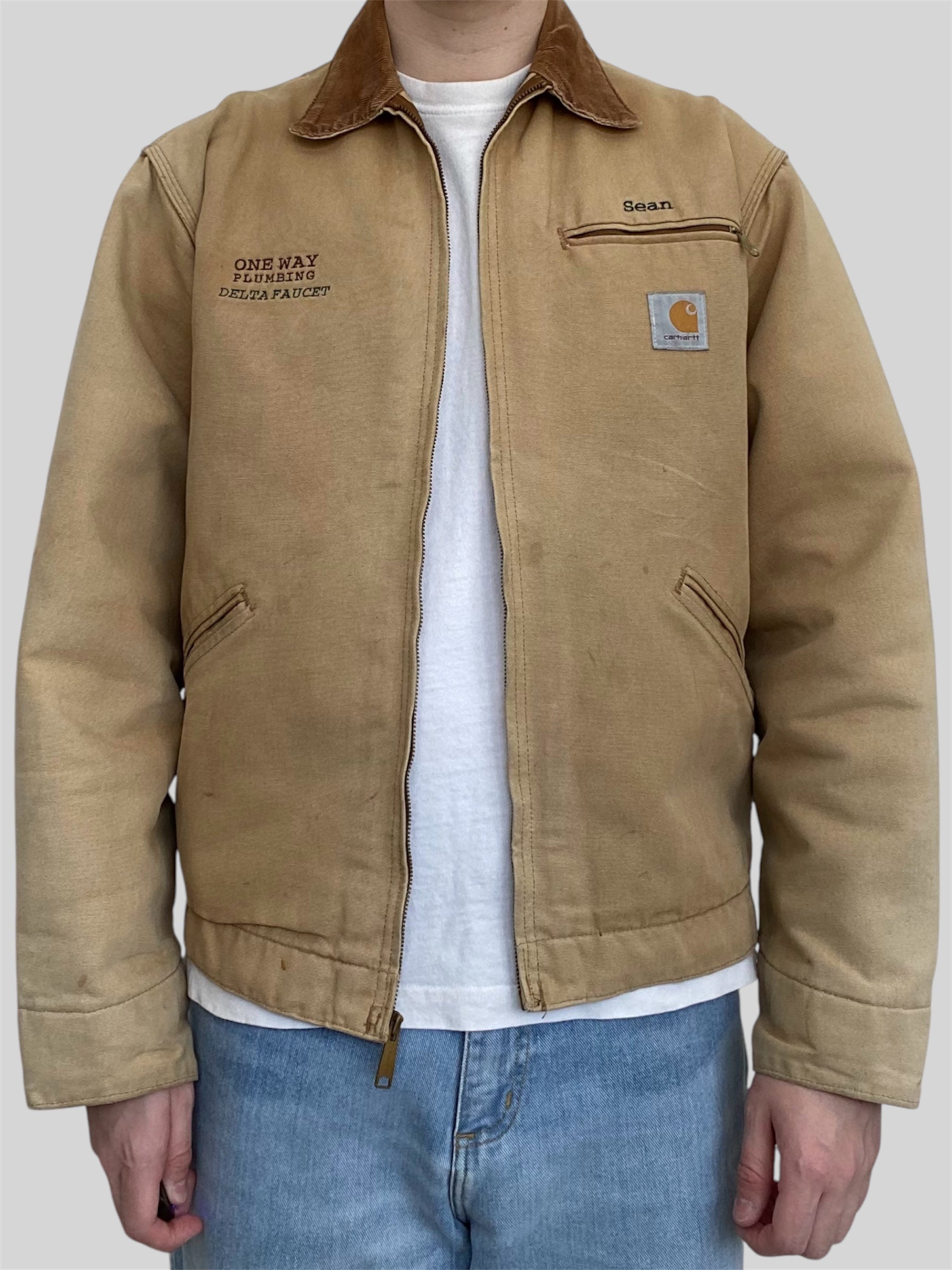 Vintage Carhartt Blanket Lined Embroidered Detroit Jacket J01 BRN Beige Medium