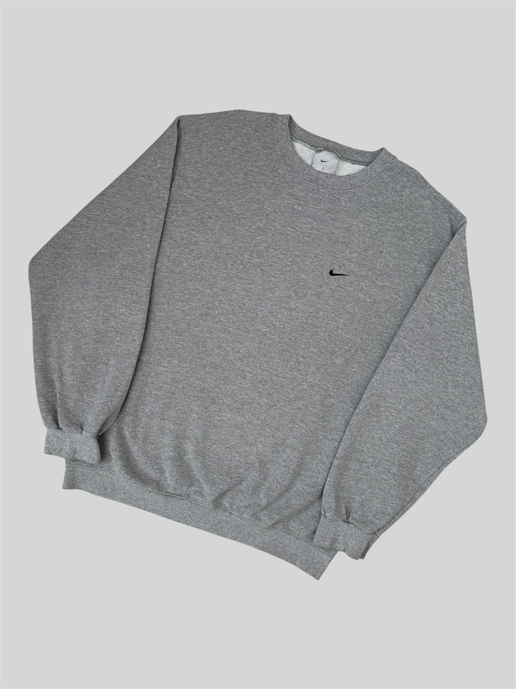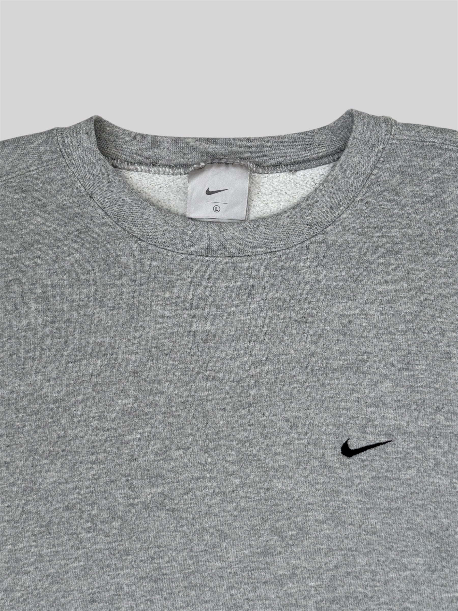 Vintage Nike 90s Embroidered Swoosh Pullover Sweatshirt Light Grey Large