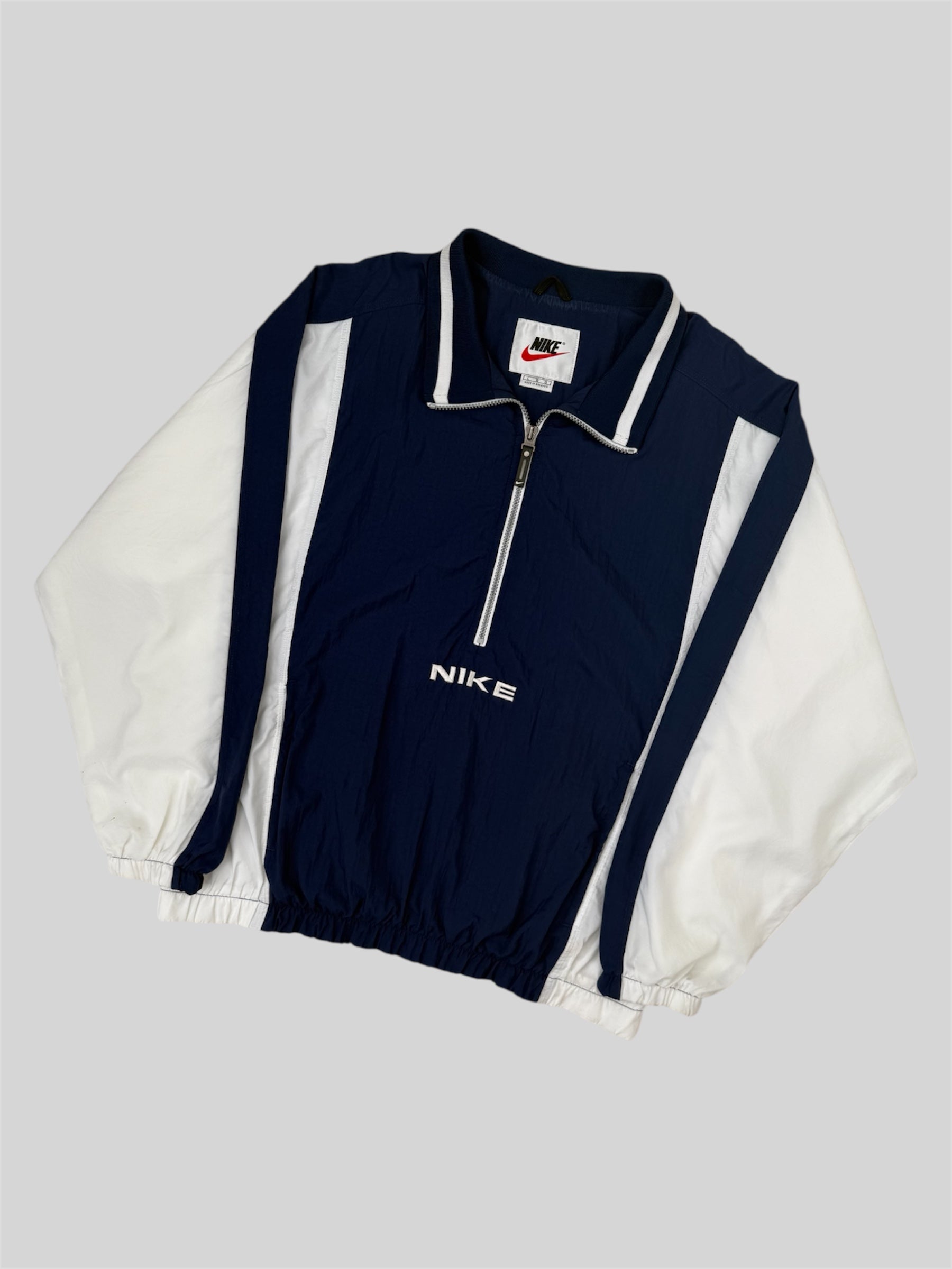 Vintage Nike Embroidered Spellout Quarter Zip Windbreaker Jacket Blue Large