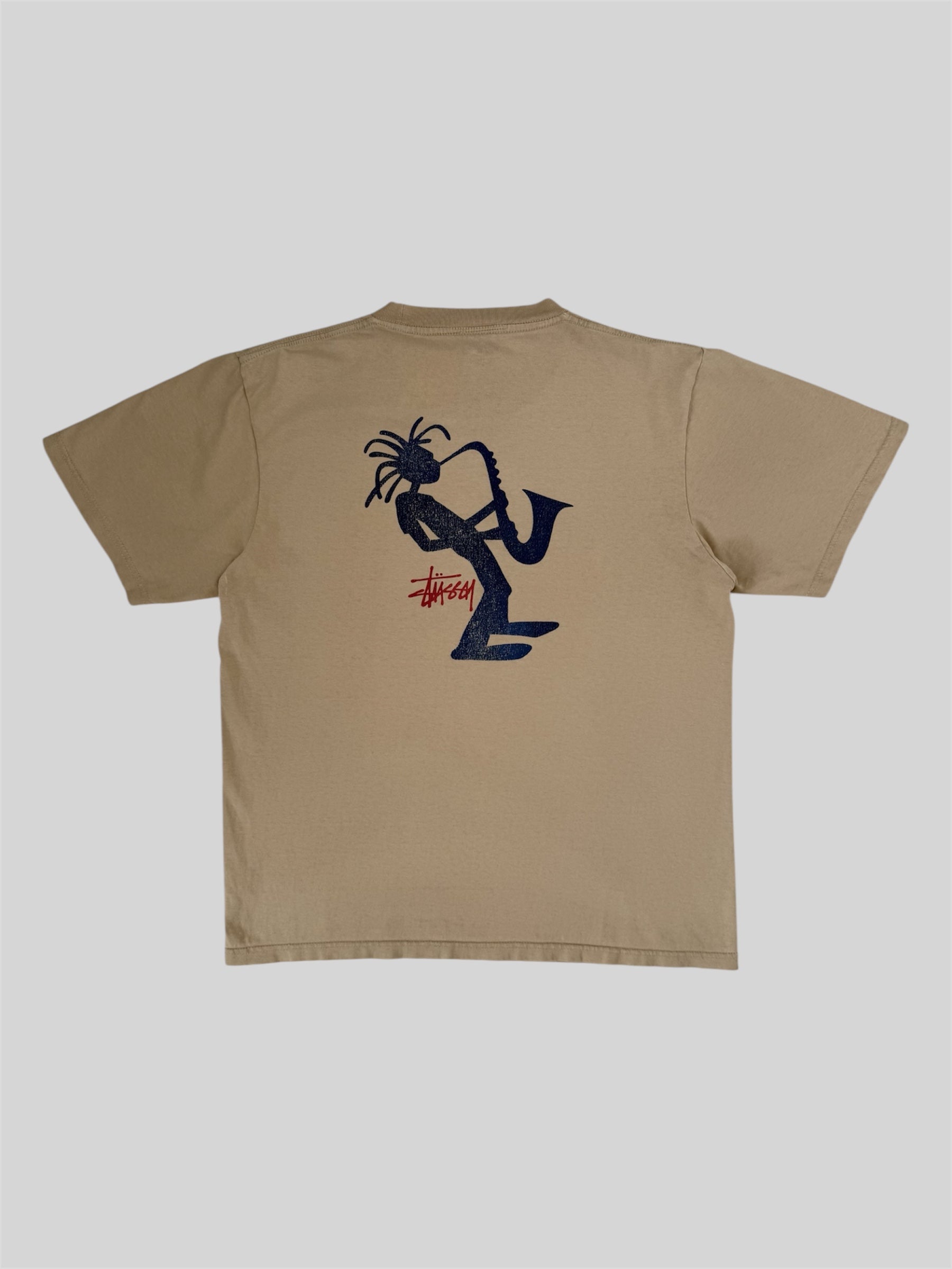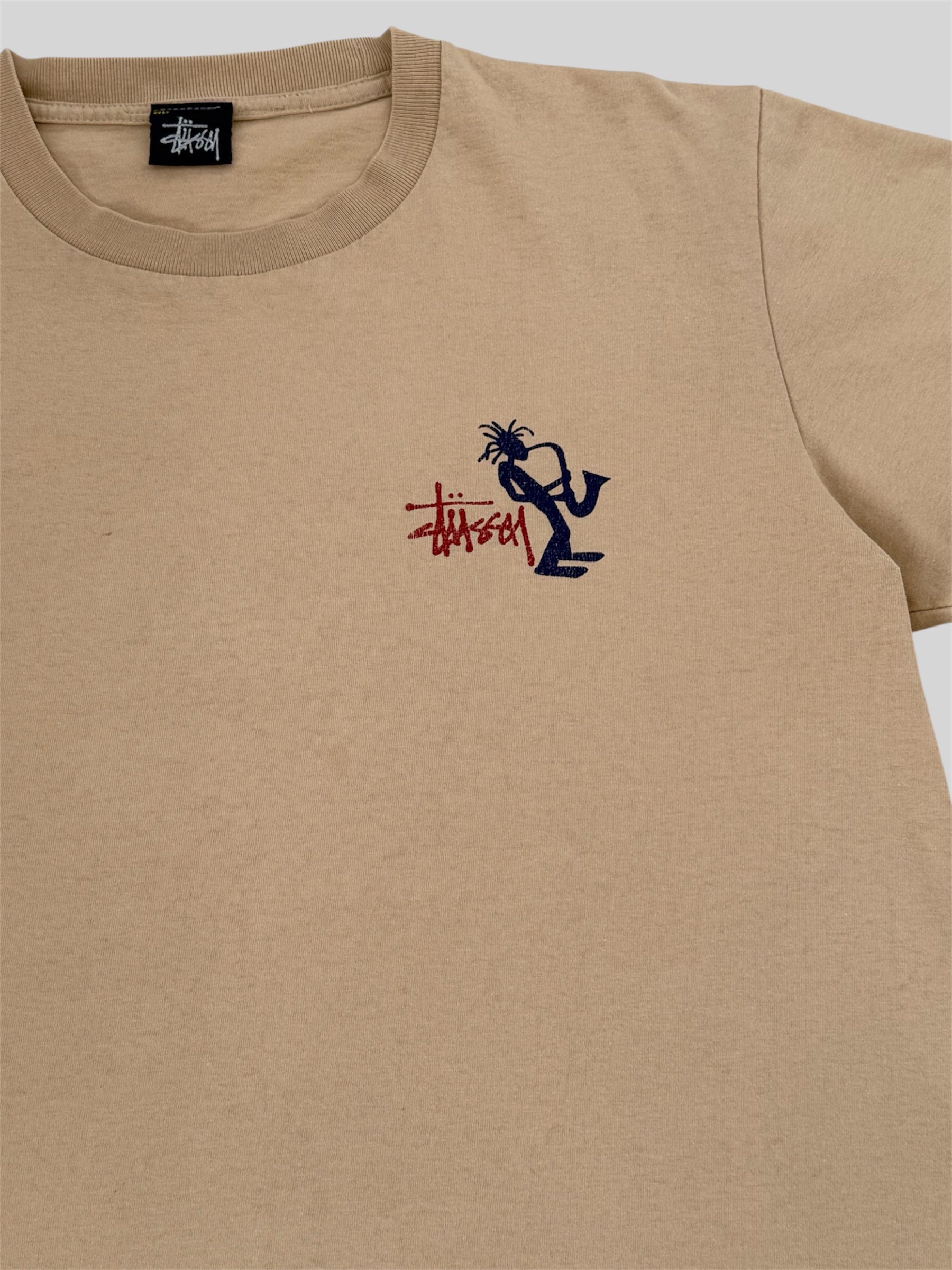 Vintage Stussy 2000s Spellout Graphic Print T Shirt Beige Small