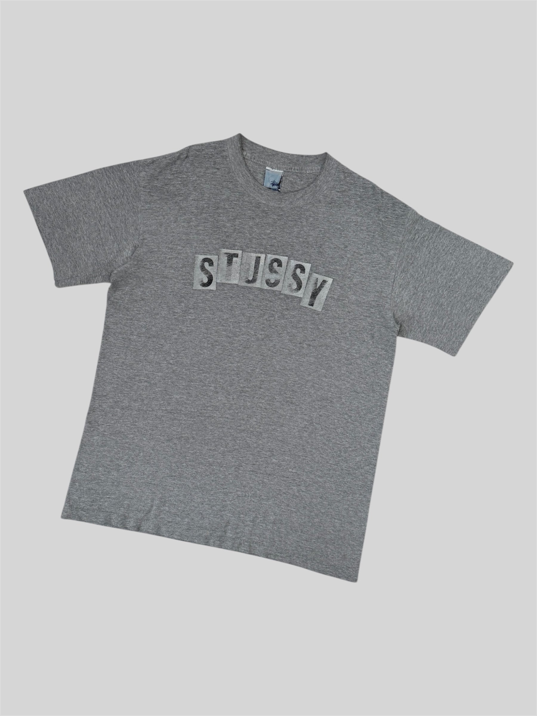 Vintage Stussy 2000s Spellout Graphic Print T Shirt Light Grey Medium