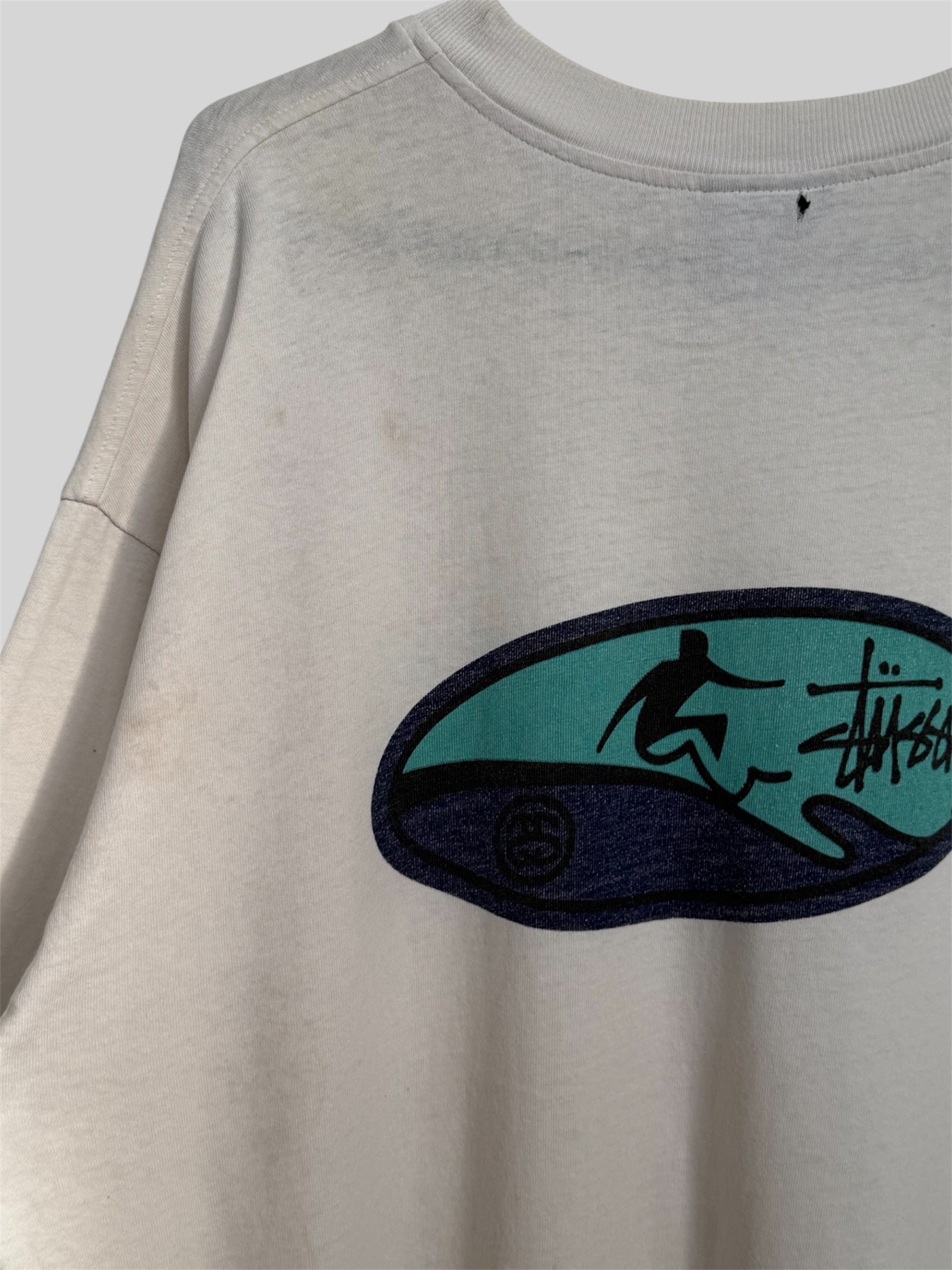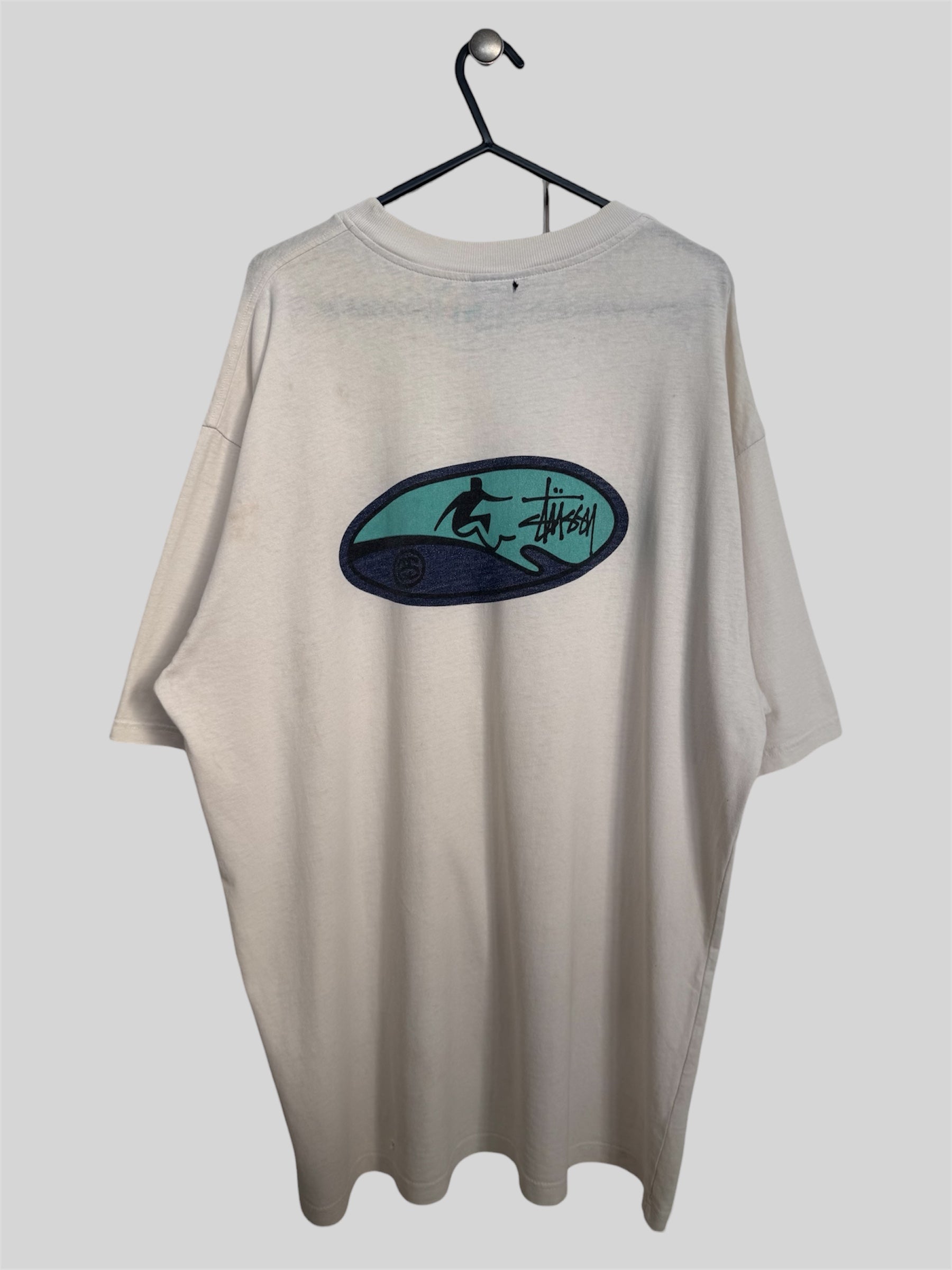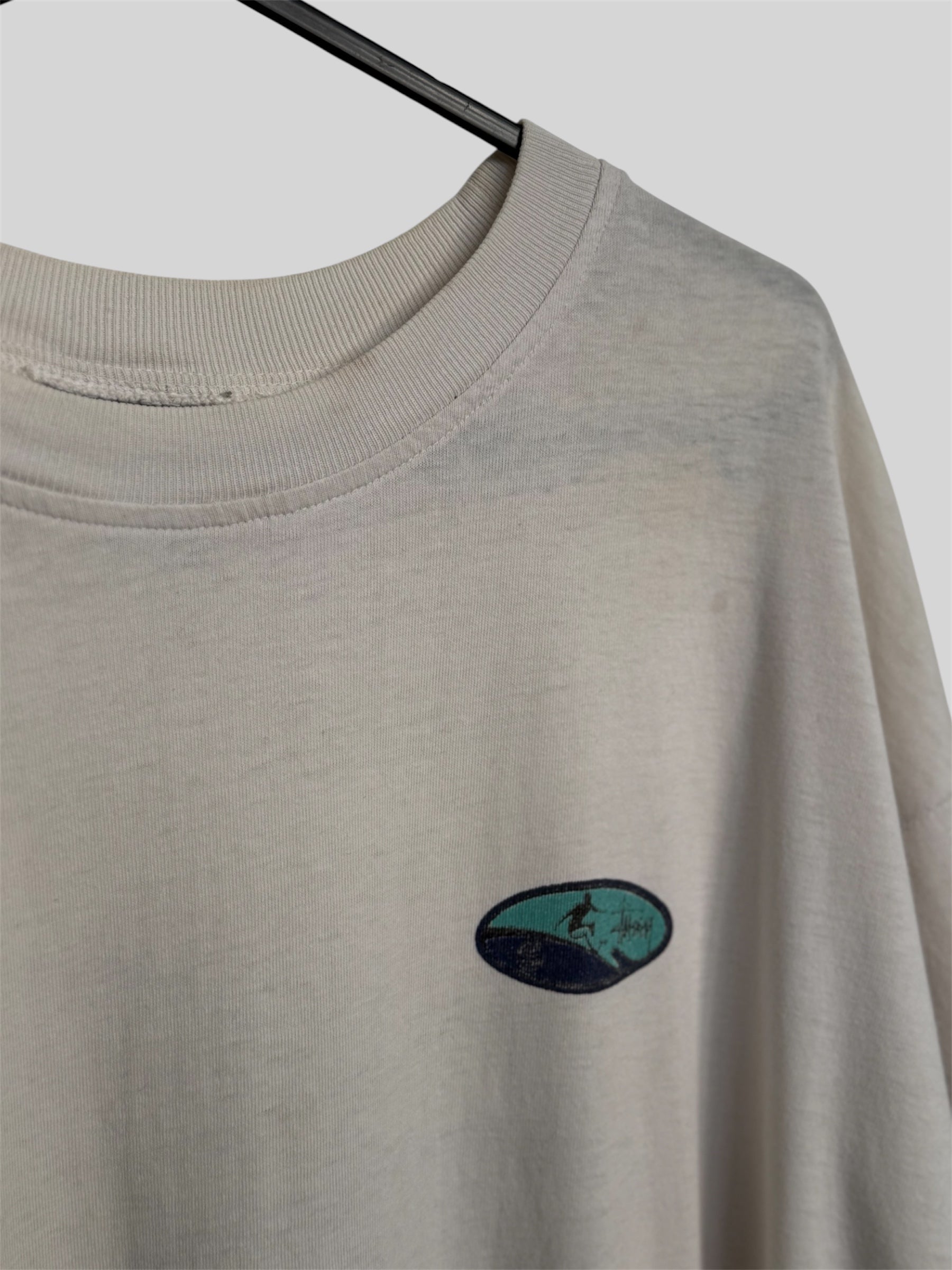 Vintage Stussy Early 90s Surfer Graphic Print T Shirt White Small