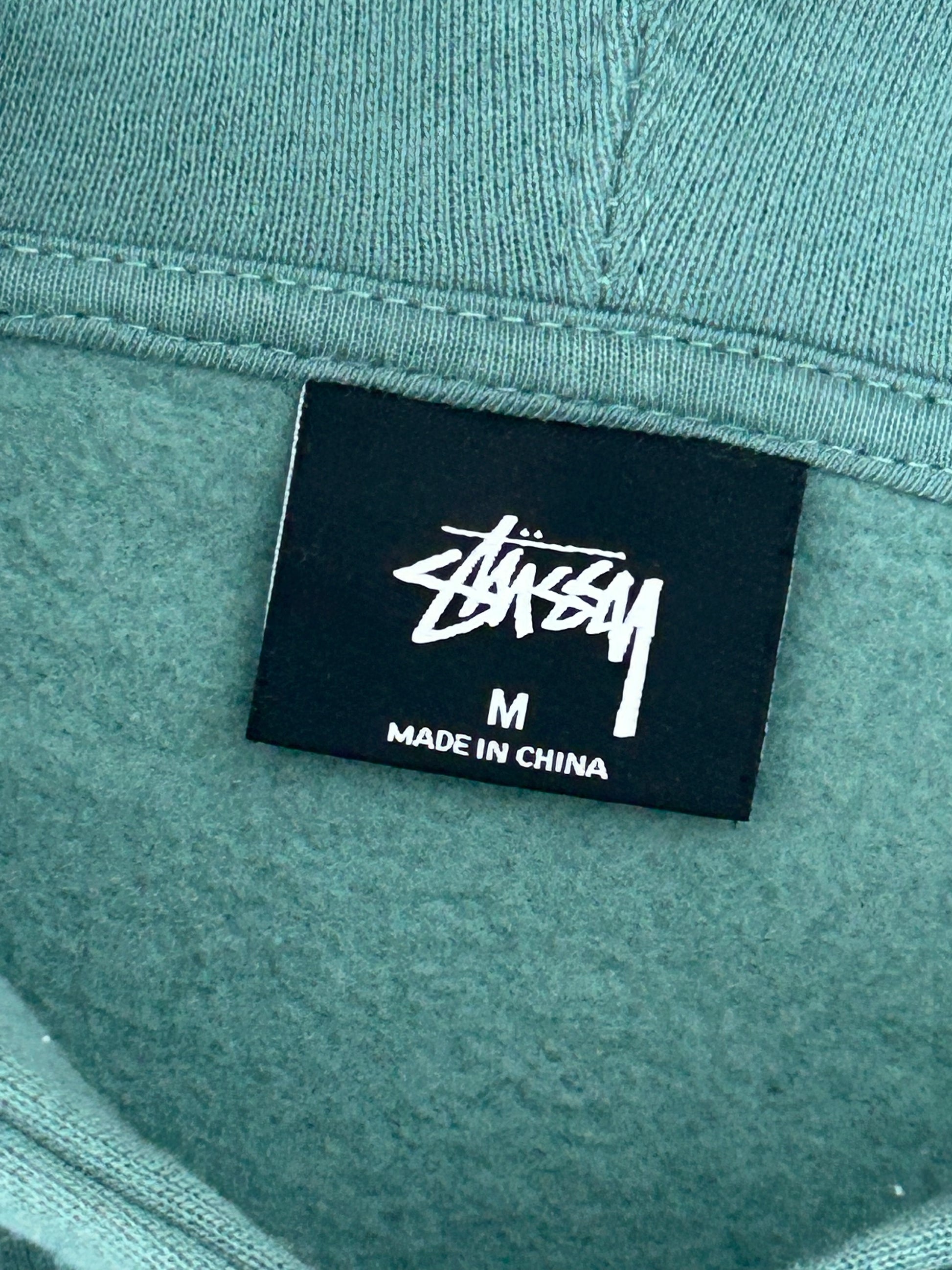 Vintage Stussy Spellout Back Print Pullover Hoodie Green Medium